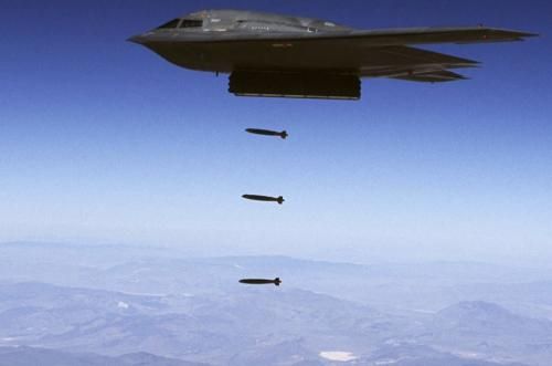 In alto nei cieli i bombardieri Usa B-2 Spirit. In basso c'è l'Europa